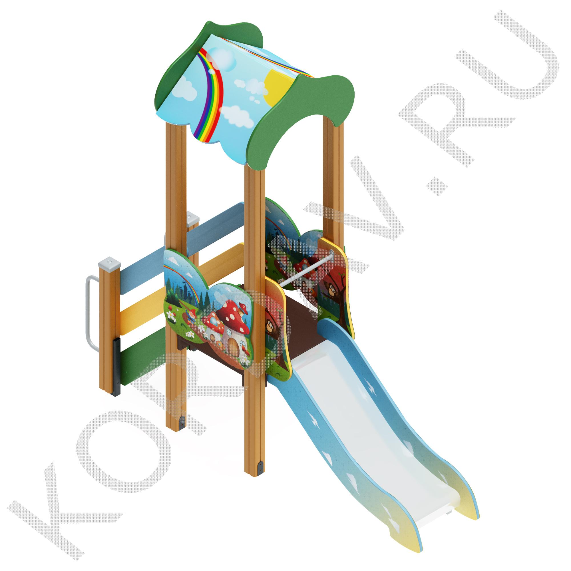 Комплектация: одна башня с крышей, горка с поручнем, лестница.